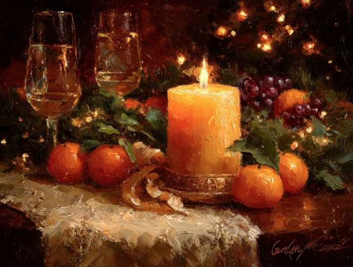 Мандариновый вечер – пишем праздничный натюрморт при свечах
